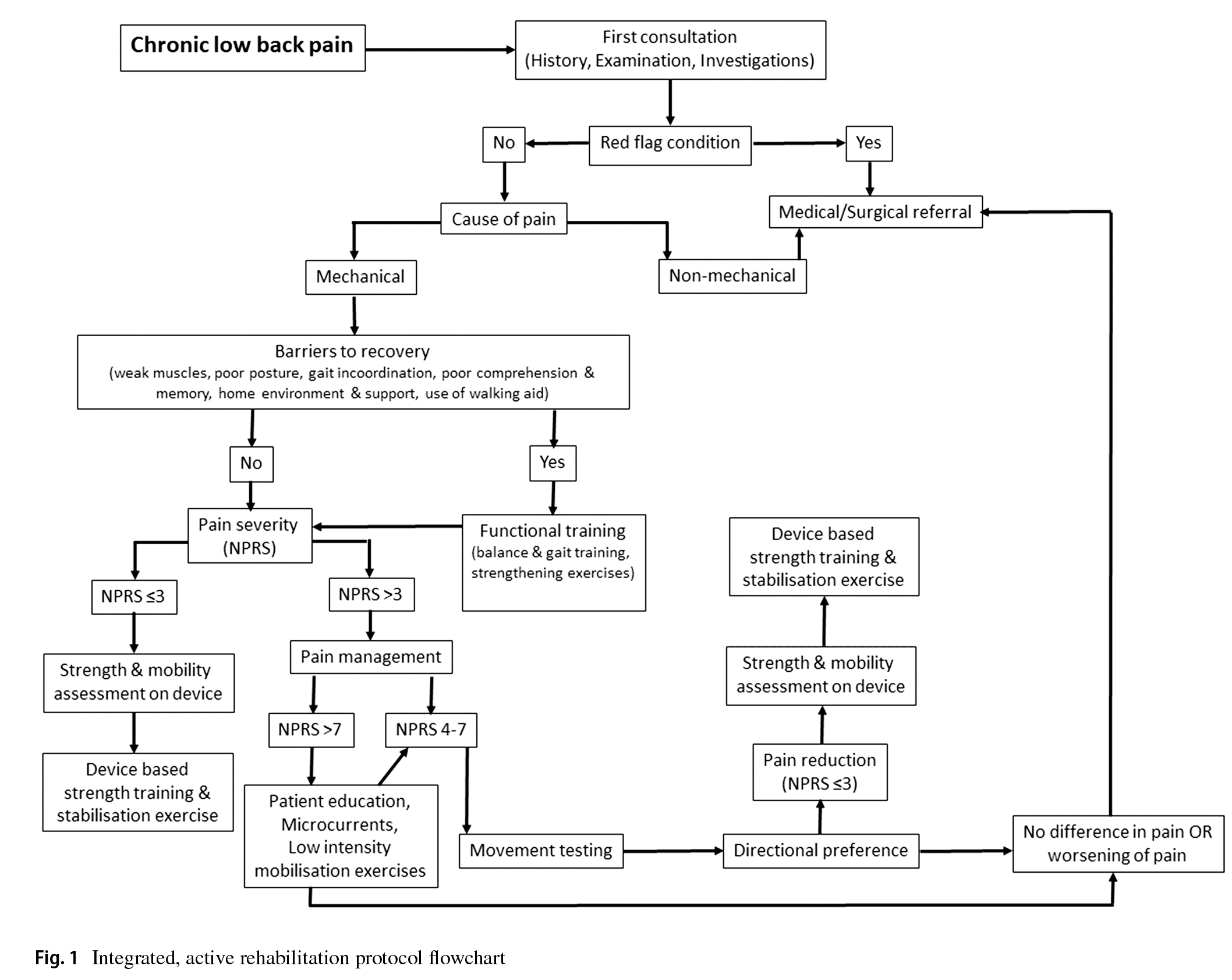 An integrated active, rehabilitation protocol primarily based on severity of pain on NPRS, limitation in activities of daily